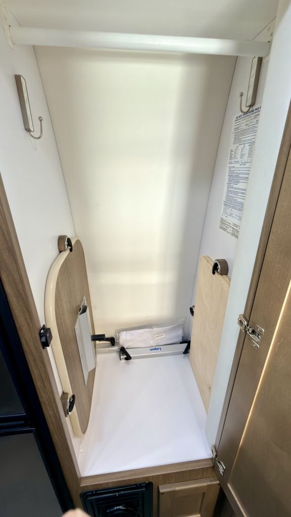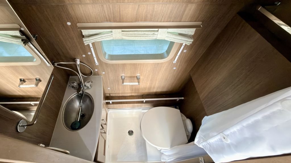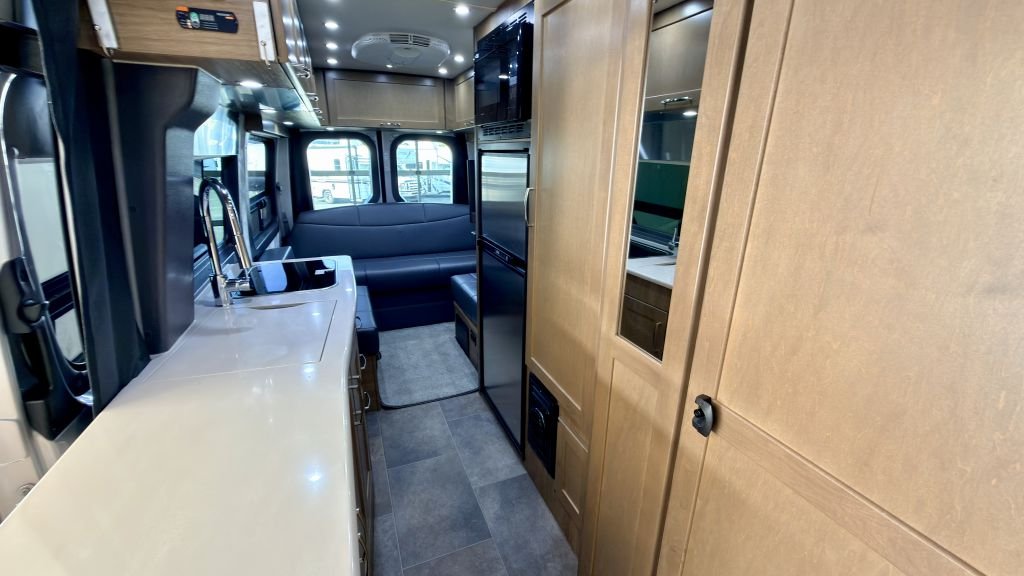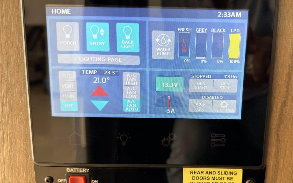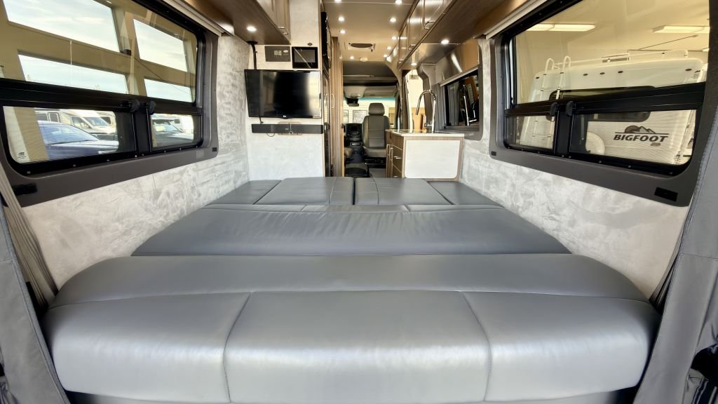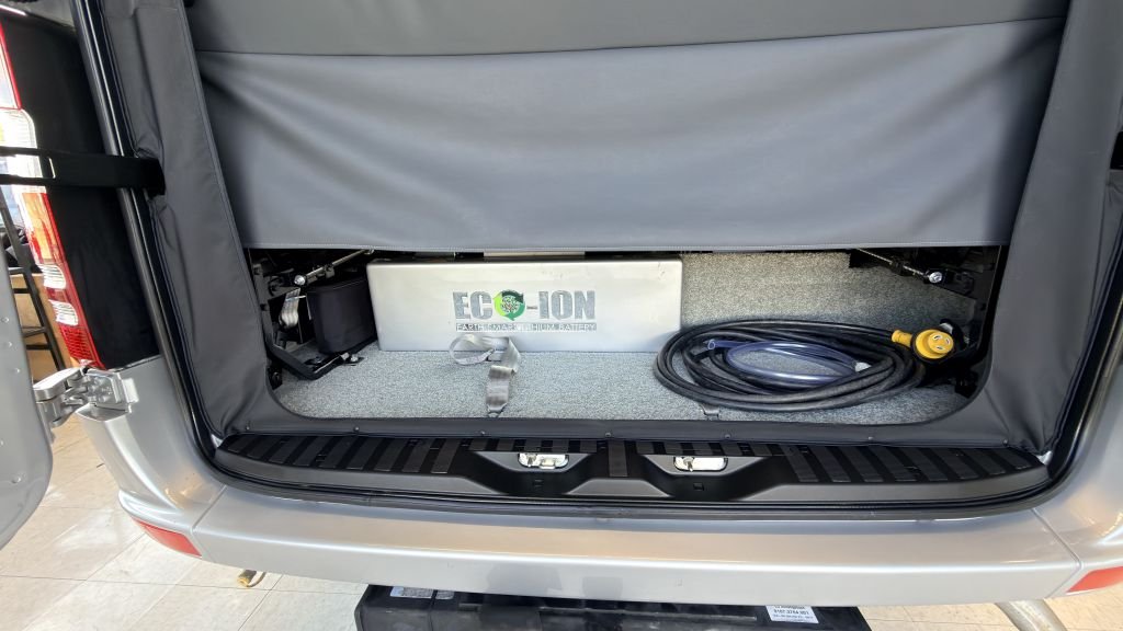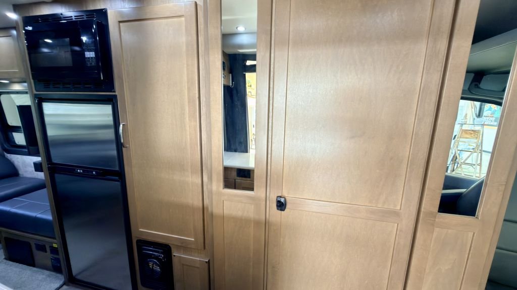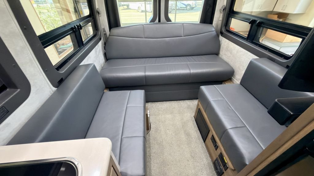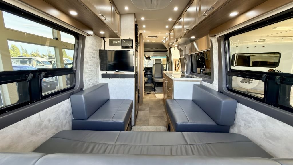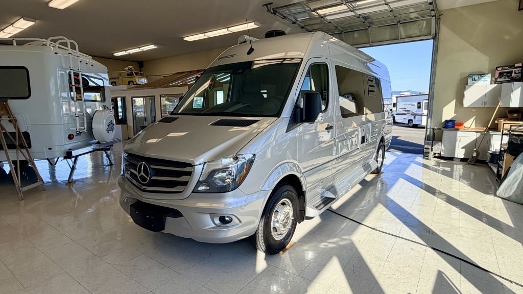 Has roof air conditioner, high volume fan, power awning, backup camera, power sofa bed, TV, Blue Ray DVD Player, outside shower, Truma Aqua GO on demand hot water, Convection microwave, built in generator, Solar, Lithium batteries, front swivel seats, 2 X bug screens (side door & rear door), built in navigation, tow package, 2 door propane & 120V fridge & freezer, Alcoa wheels and more...