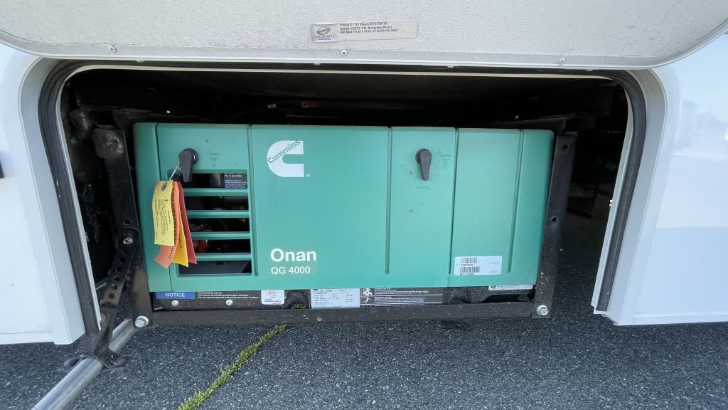 This unit has a ducted roof mounted air conditioner, power awning, 2 door 10 Cu Ft 12V fridge/freezer, convection microwave, backup camera, LED lights, radio, speakers inside and outside, TV, built in generator, slide topper, tow package and more…