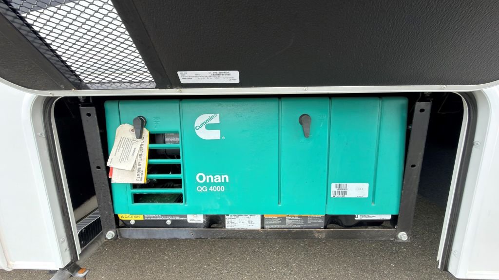 Has ducted roof air conditioner, high power fan, power awning, backup camera, built in generator with 7.4 hours on it, solar, tow package, cruise control, 12 V fridge/freezer, convection microwave, tank heater, propane/electric water heater, 2 coach batteries, TV, outside speakers, outside propane connection and more…