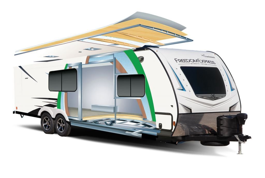 Coachmen built their Freedom Express trailers to handle our humid climate by using Azdel composite panels in the sidewalls and the back wall that won’t rot, mold or sustain any water damage and are Formaldehyde-free! You can read more about that material by visiting their website