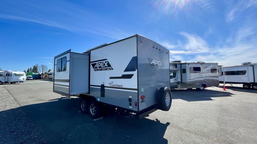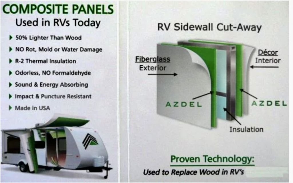 Coachmen built their 7.5’ Apex Nano trailers to handle our humid climate by using Azdel composite panels in the sidewalls and the back wall that won’t rot, mold or sustain any water damage and are Formaldehyde-free! You can read more about that material by visiting their website