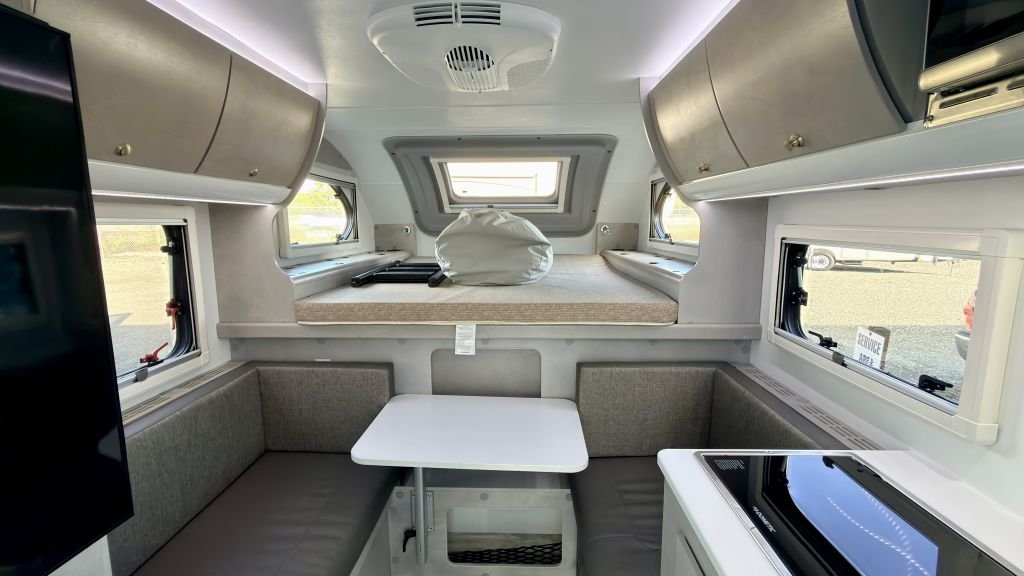 Has roof air conditioner, electric jacks with remote, electric side awning, Alde heater & on demand hot water combo, Stargazing skylight, dual pane Lexan windows, Hide-away cassette toilet, 210 W solar, Lithium battery, Nautilus water system management, 4.6 Cu Ft 12 V fridge, exterior shower, exterior propane hookup, Froli sleep system, observation camera and more…